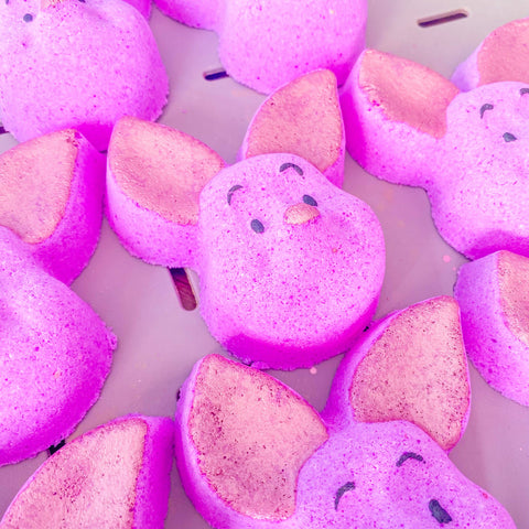 Cute little Piggy Bath Bomb inspired by our Silly Old Bear's adorable pal! Scented with Madam Marmalade with notes of Magnolia for a victorian perfume inspired fragrance. Bath products inspired by magical stories. Designed and handcrafted by myself in the UK, to bring the magic into your everyday life. To keep the magic alive and prolong the life of your bath bomb, please store away from moisture. External use only. Avoid contact with eyes, rinse immediately if contact is made. Vegan, cruelty free and packaged in 100% biodegradable packaging. Listing is for 1 bath bomb. Please be aware due to the nature of handmade bath bombs that colour may vary slightly between each bath bomb. Ingredients: Sodium Bicarbonate, Citric Acid, Potassium Bitartrate, Prunus Armeniaca Kernel Oil, CI45100, Parfum. Allergens: BENZYL SALICYLATE, CITRAL, CITRONELLOL, COUMARIN, EUGENOL, LIMONENE, LINALOOL.